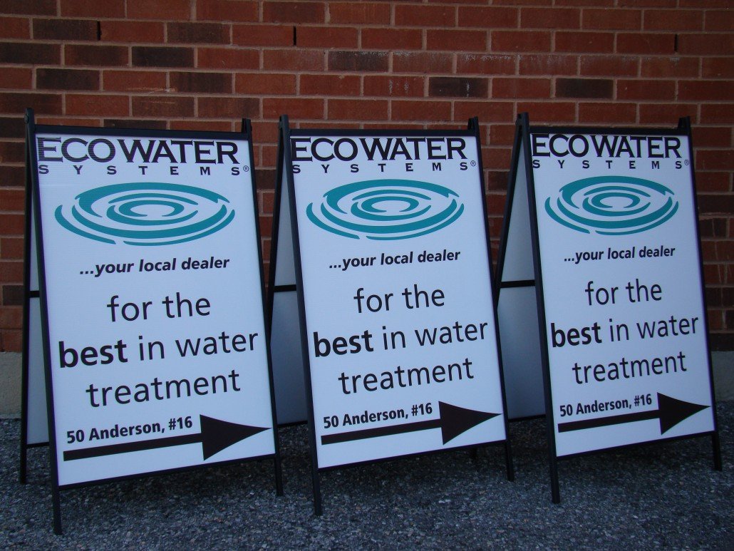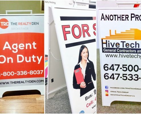 A-Frame signs are offered with Coroplast inserts, while Sandwich Boards are available in PVC material.